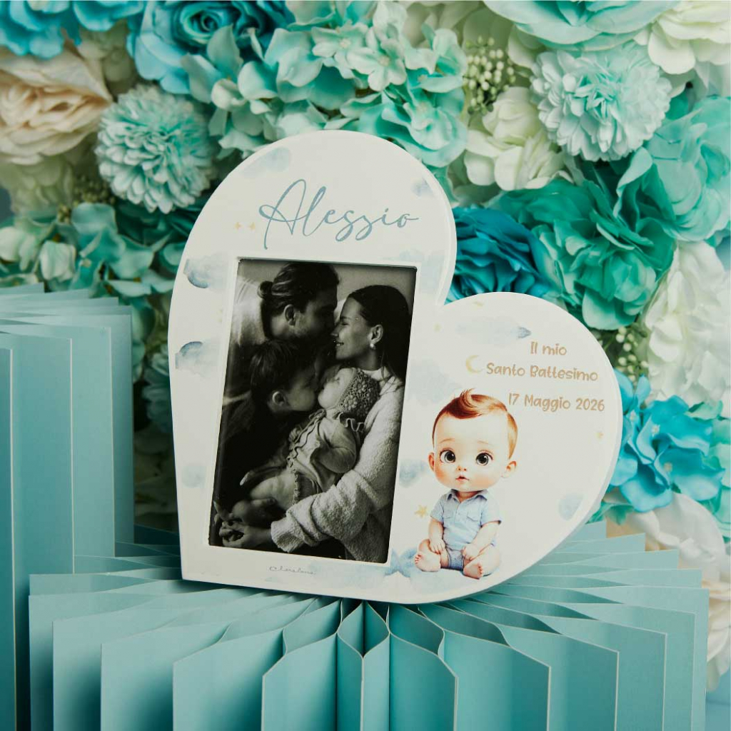 PORTA FOTO CUORE BATTESIMO MASCHIO