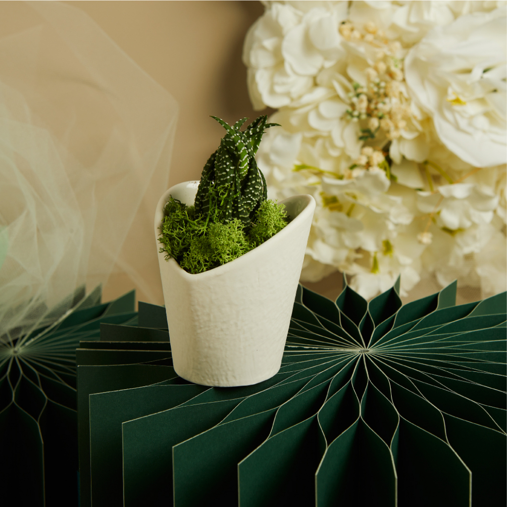 VASETTO BIANCO CUORE CON PIANTINA E MUSCHIO