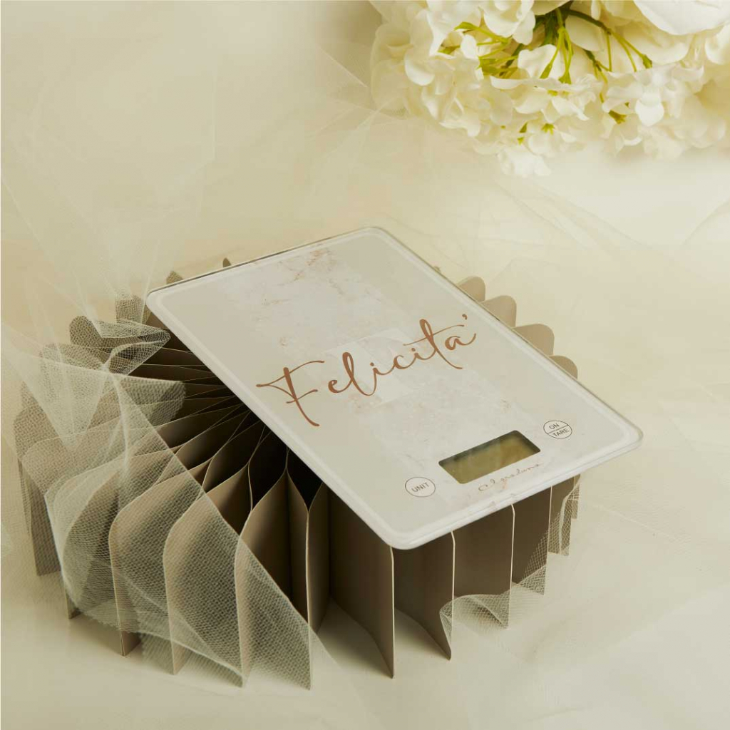 • Bigliettino personalizzabile con i nomi degli sposi e la data dell’evento