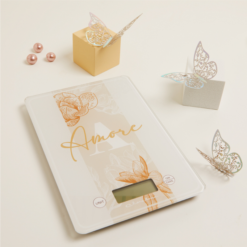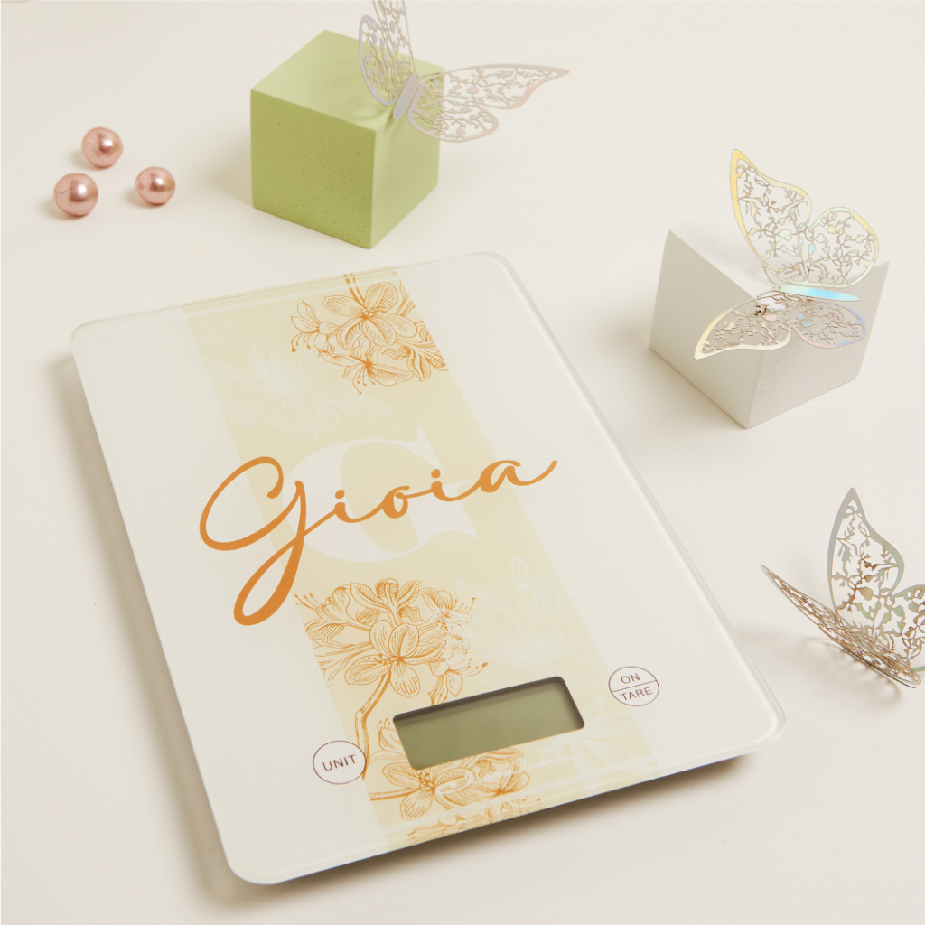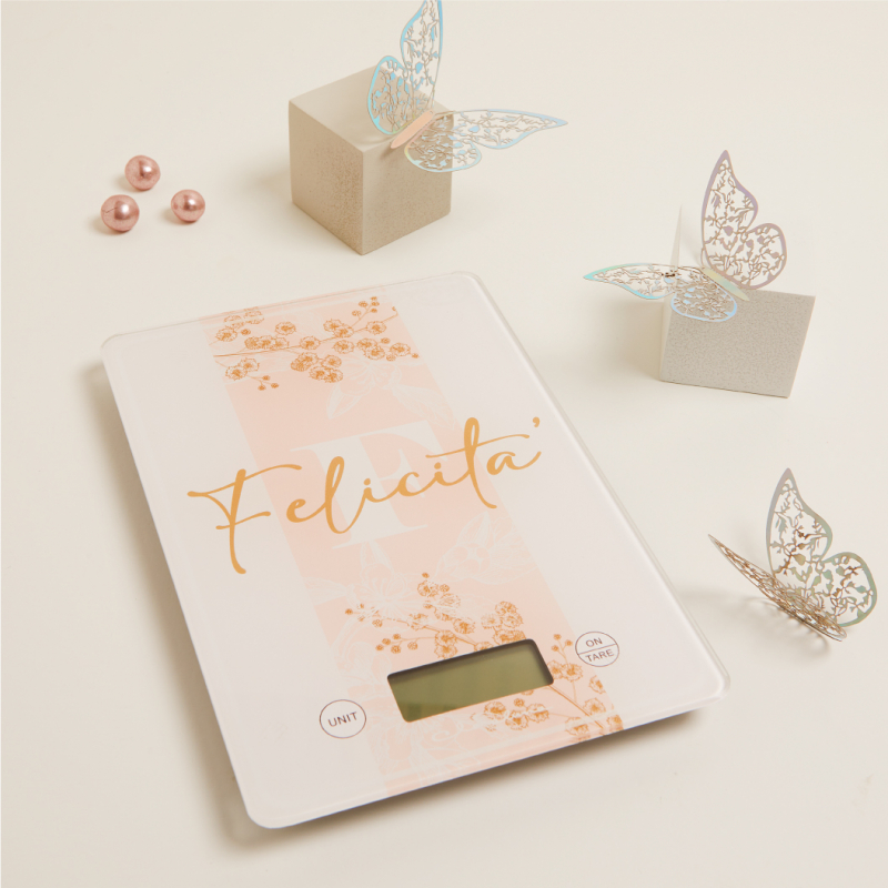 Bilancia digitale dal design elegante, arricchita dalla scritta "Gioia". Perfetta come bomboniera di matrimonio, rappresenta un augurio di felicità e prosperità per la coppia e i loro cari. Compatta e moderna, è un regalo utile e simbolico che unisce praticità e stile, ideale per accompagnare un evento speciale con un tocco di raffinatezza e significato.