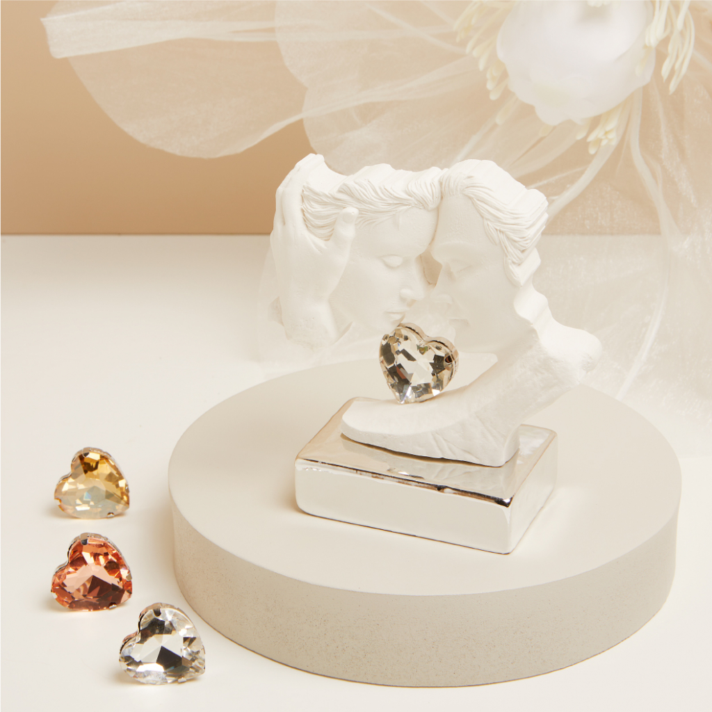 Questa affascinante scultura rappresenta una coppia di innamorati, catturando l’essenza dell’amore e della dolcezza. Realizzata con cura e attenzione ai dettagli, la scultura è arricchita da uno strass scintillante, abbinato al colore della base silver, che aggiunge un tocco di eleganza e raffinatezza.