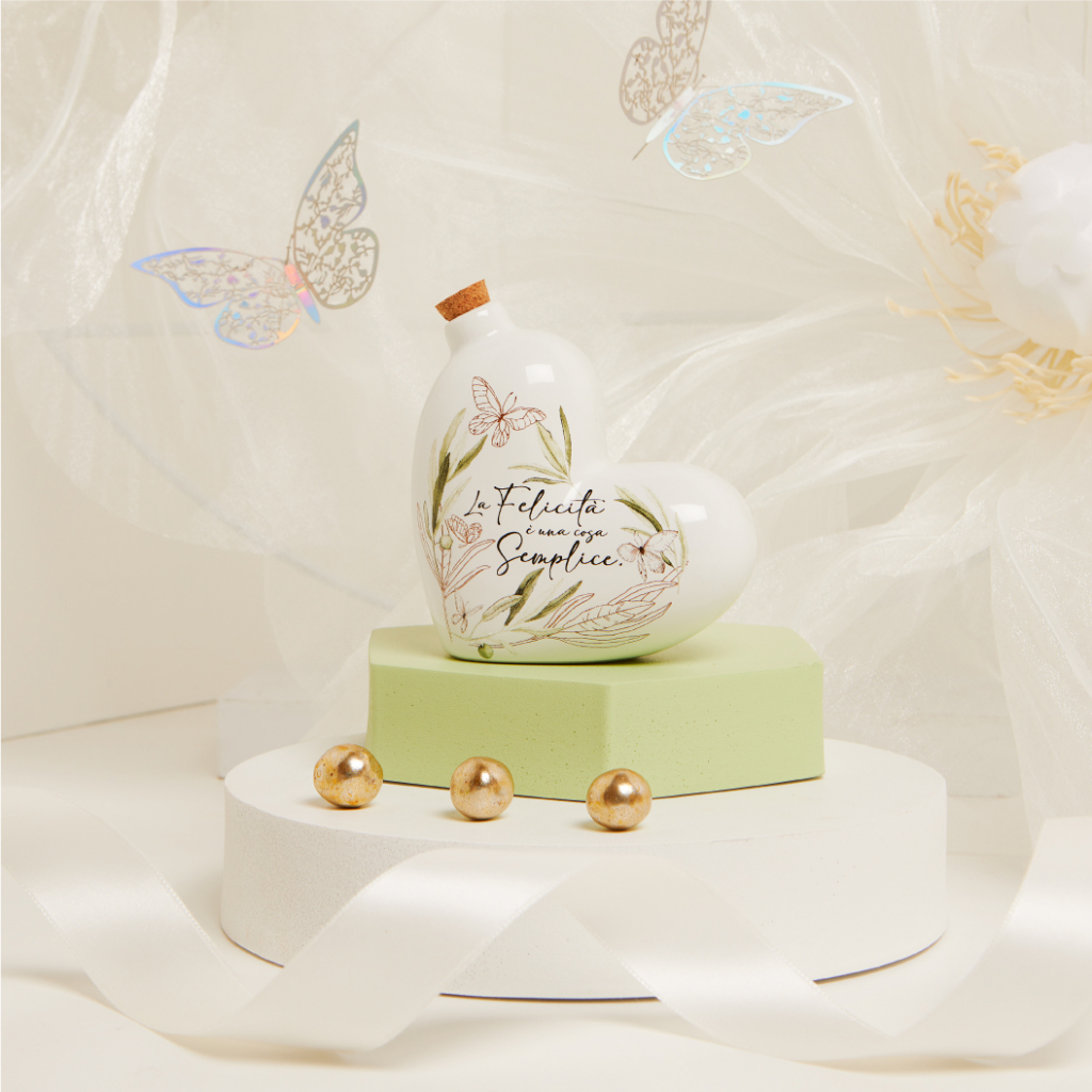 Elegante oliera a forma di cuore in ceramica, perfetta come bomboniera per matrimonio.