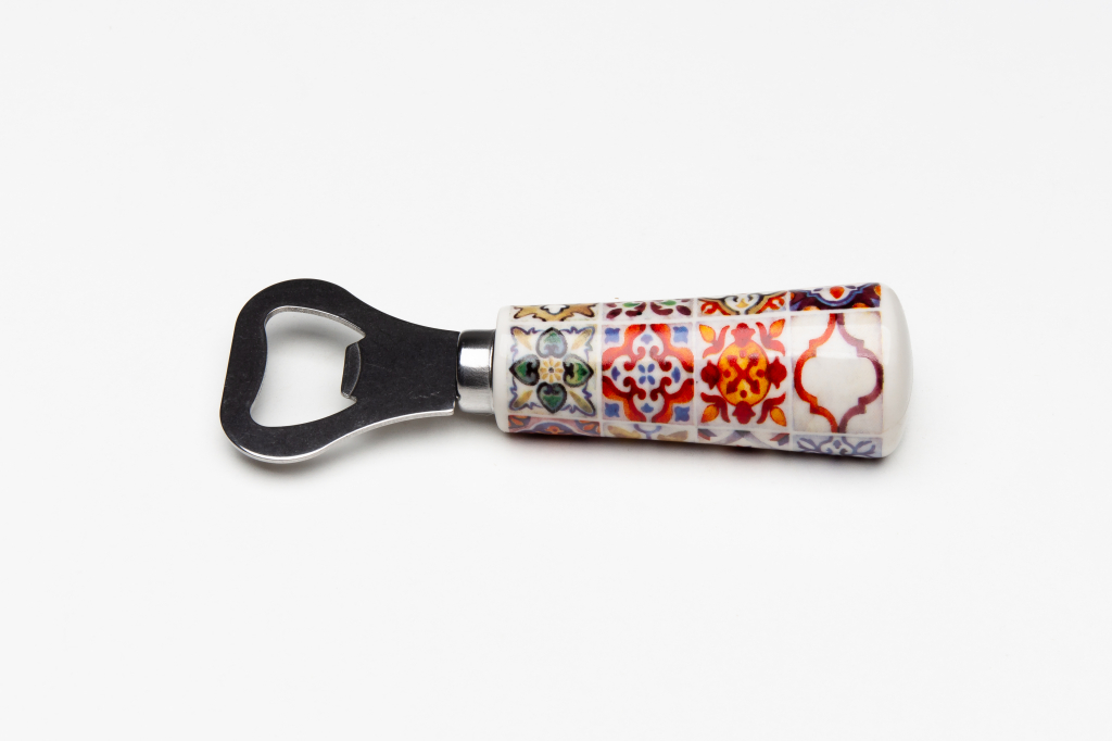 Un apribottiglia dal design raffinato, con manico in ceramica decorato con il tipico decoro siciliano. Unisce praticità ed eleganza, aggiungendo un tocco di stile alla tua tavola o alla tua cucina. Perfetto come bomboniera per matrimoni ed eventi speciali, questo apribottiglia è un piccolo regalo che celebra la tradizione e la bellezza della Sicilia.