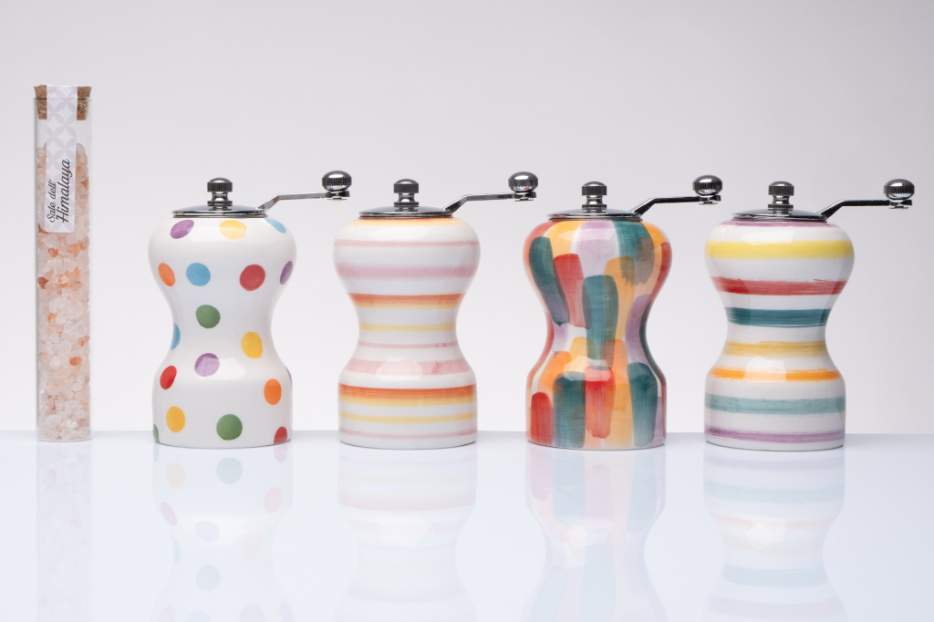 Macinasale in Ceramica Dipinta a Mano con Provette di Sale Gourmet – Set di 6 Colori Assortiti