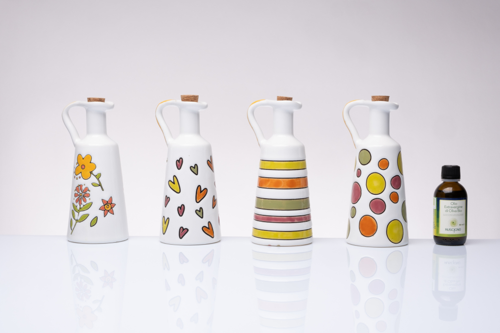 Questa oliera artigianale da 220 ml, dipinta a mano e disponibile in 4 colori assortiti, è un accessorio elegante e funzionale .L'oliera è accompagnata da un flacone di olio extravergine di oliva (EVO), per un'esperienza di gusto unica. Perfetta come bomboniera o regalo per matrimoni, unisce bellezza e qualità in un oggetto utile e raffinato.