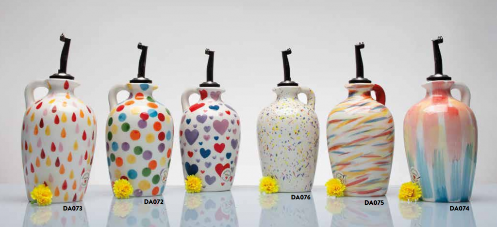 Oliera 400 ml in ceramica dipinta a mano con flaconcino olio Evo Cuorematto Art Da270