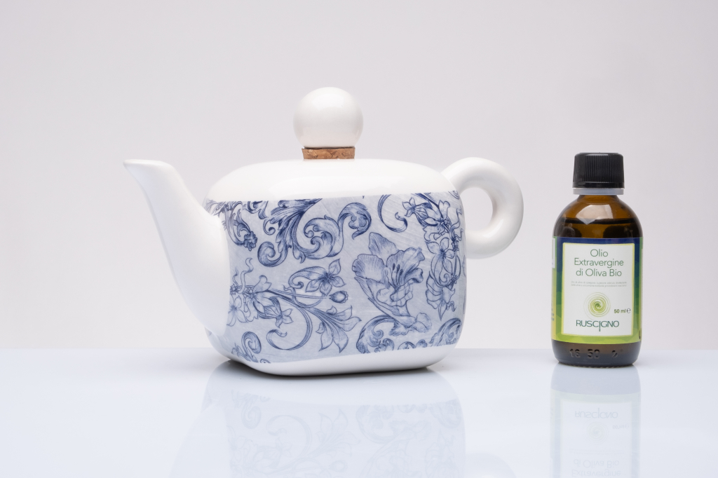 Elegante oliera in ceramica, decorata con un raffinato fregio, perfetta per arricchire la tua tavola con stile. Include un flaconcino da 60 ml di olio, ideale per servire condimenti in modo pratico e sofisticato. Un regalo originale e utile, perfetto come bomboniera per matrimoni, battesimi e altre occasioni speciali.