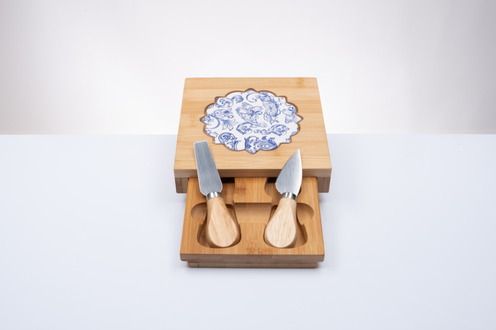 All'interno, troverai 2 coltellini per formaggi, perfetti per servire e degustare i tuoi formaggi preferiti con stile. Ideale come bomboniera per matrimoni o eventi speciali, questo set unisce praticità, e bellezza.