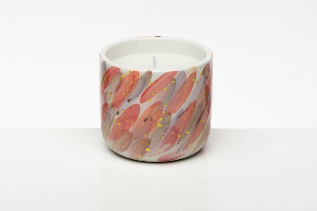 Delizioso vasetto in ceramica dipinto a mano, contenente una candela profumata in fragranze delicate. Perfetto come bomboniera per matrimoni, battesimi e altre occasioni speciali.