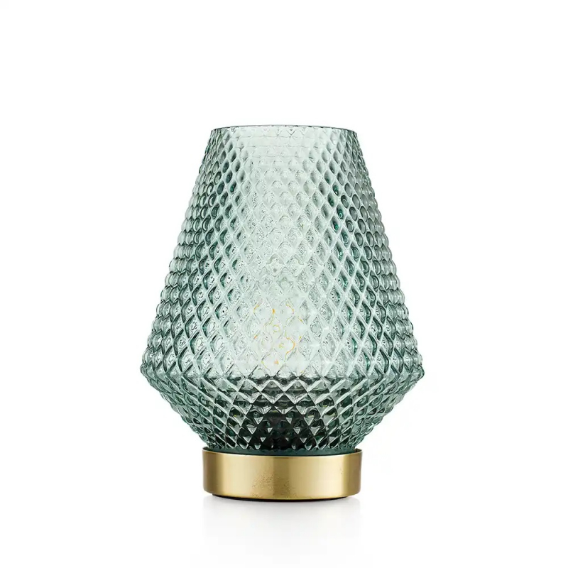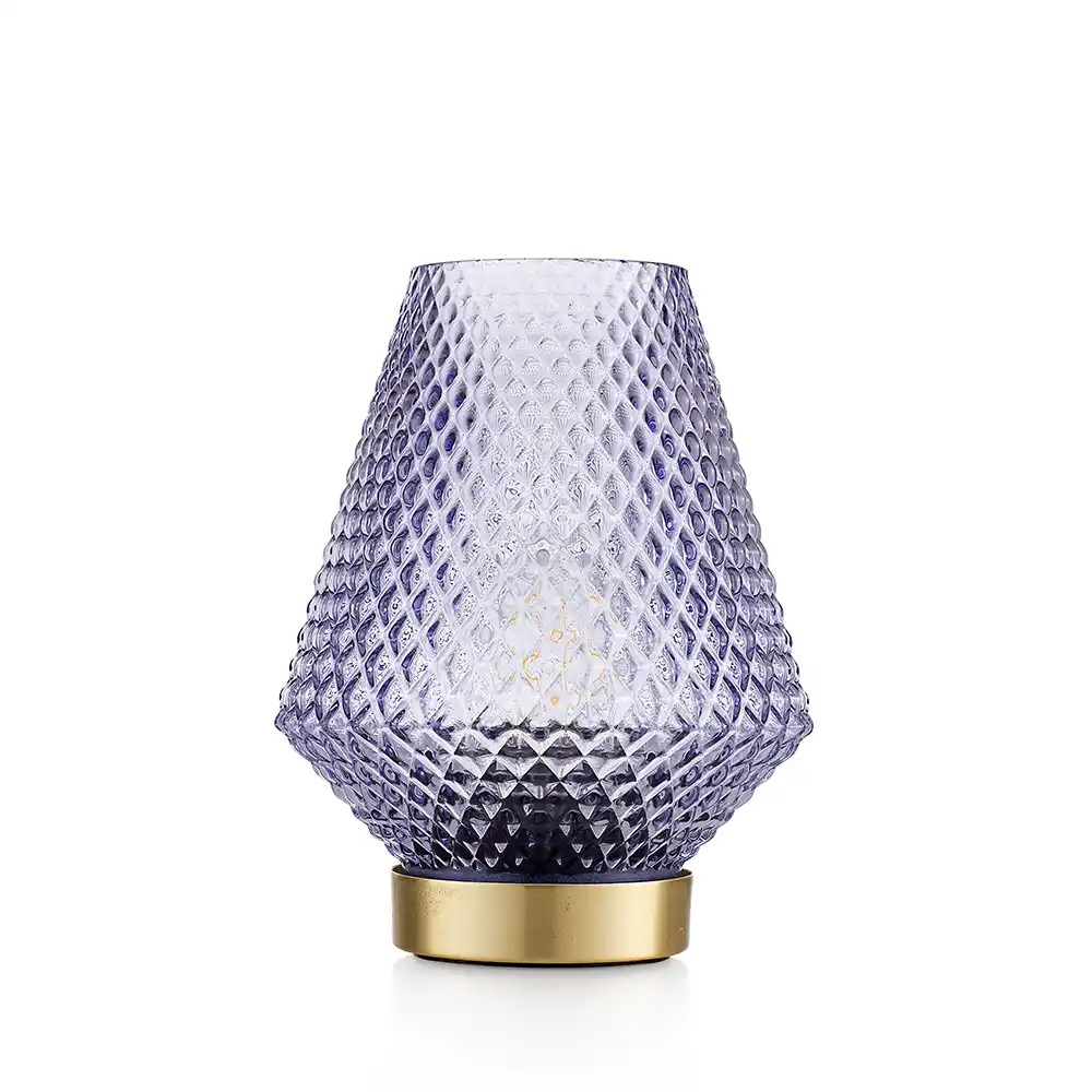 Lampada con carica a batteria in vetro colorato e base in metallo della collezione Marrakech Emò.