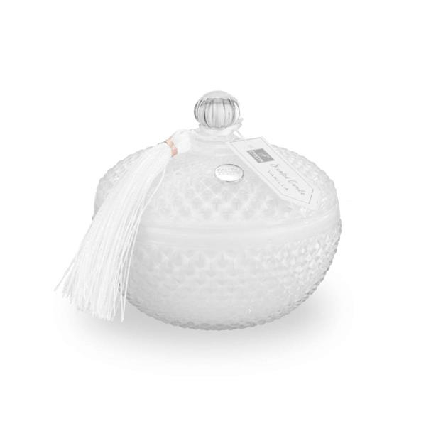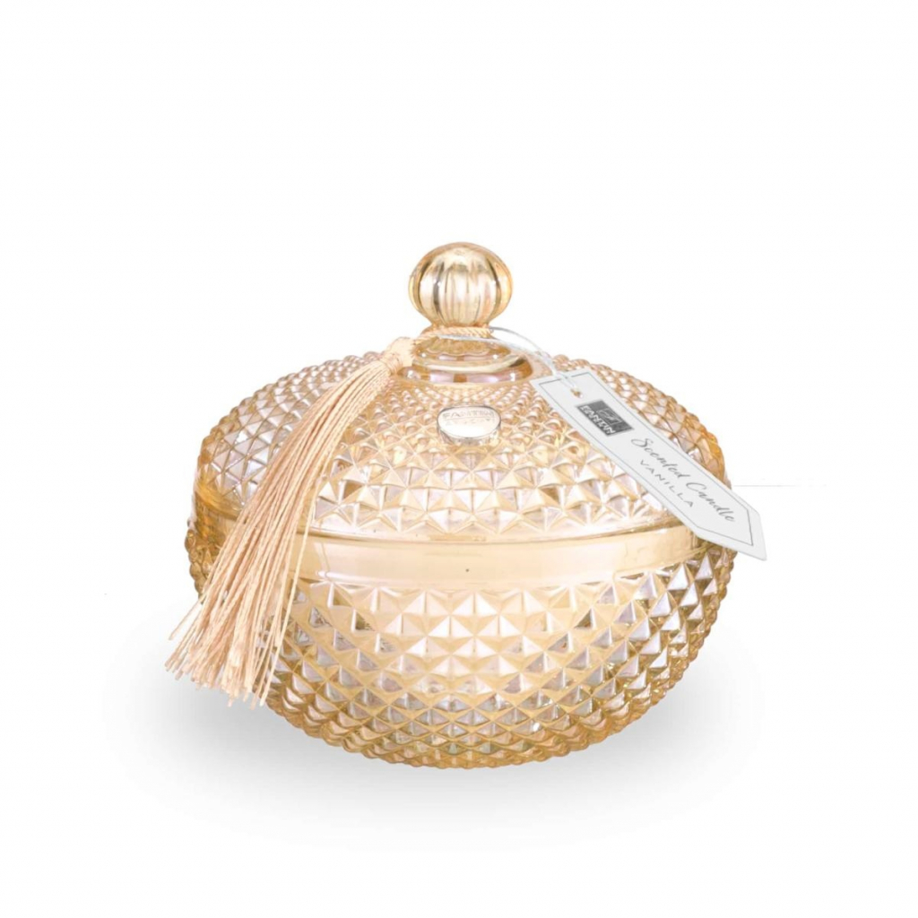 "Questa deliziosa scatolina in vetro colorato è un elegante portafortuna che racchiude al suo interno una cera profumata con la dolce fragranza di vaniglia. Perfetta come bomboniera, aggiunge un tocco di raffinatezza e un profumo avvolgente a qualsiasi occasione speciale. La combinazione di vetro e cera crea un design unico che rende questo prodotto ideale per matrimoni, battesimi, lauree o qualsiasi evento che meriti di essere ricordato con eleganza. Un pensiero raffinato e utile che lascerà un’impronta duratura nei cuori dei vostri ospiti."