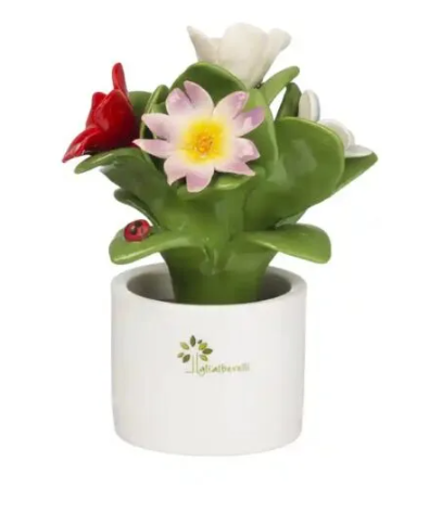 Questa piantina in ceramica di Capodimonte è un capolavoro artigianale unico, realizzato interamente a mano da esperti artigiani. Ogni dettaglio, dalla modellatura alla pittura, riflette la tradizione e la maestria che caratterizzano la ceramica di Capodimonte. I colori vivaci e le sfumature delicate conferiscono alla piantina un aspetto elegante e raffinato, rendendola perfetta come idea regalo o bomboniera per occasioni speciali. Che sia per un matrimonio, una cerimonia o semplicemente come pensiero per una persona cara, questa piantina in ceramica saprà aggiungere un tocco di classe e originalità a qualsiasi ambiente. Un oggetto che unisce l'arte, la bellezza e la funzionalità in un unico straordinario pezzo