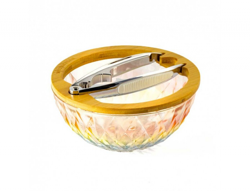 Ciotola in vetro arcobaleno con rompinoci in acciaio – Eleganza e funzionalità come bomboniera