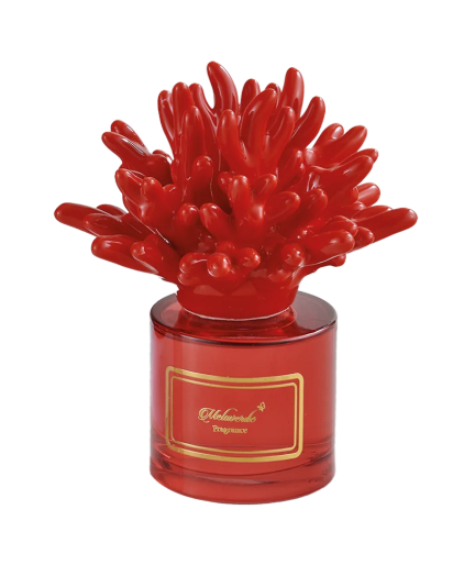 Il tappo a forma di corallo in ceramica di Capodimonte arricchiscono questo profumatore, mentre la fragranza Rouge Imperial, con le sue note calde di frutti rossi, fiori delicati, vaniglia e legni pregiati, avvolge ogni ambiente in una sensazione di lusso e raffinatezza.