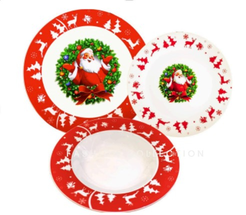 Servizio Piatti in porcellana per 6 persone natalizio 18 pezzi dec. Babbo Natale