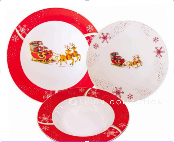 Servizio Piatti in porcellana per 6 persone natalizio 18 pezzi dec. Slitta