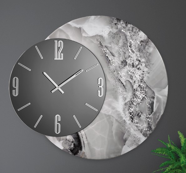 DESCRIZIONE CRYSTAL L’orologio da parete Crystal è un oggetto di design interamente realizzato a mano che ridefinisce il concetto di arredamento contemporaneo. Il suo stile unico fonde l’eleganza di uno specchio integrato con un raffinato quadrante in resina, arricchito da un inserto mate rico effetto pietra che dona carattere e profondità. Ogni dettaglio è curato con precisione artigianale, dai numeri in cristallo acrilico alle sofisticate lancette in metallo cromato, creando un equilibrio perfetto tra lusso e modernità per ambienti ricercati