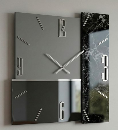 DESCRIZIONE “CUBIX” ridefinisce il tempo trasformandolo in un’opera d’arte contemporanea. Questo orologio, disponibili in due for mati, crea un sofisticato dialogo tra materiali diversi: il rigore del legno laccato opaco si fonde con la profondità del vetro specchiante e il lusso naturale della resina effetto marmo. Impreziosito da numeri e lancette in metallo cromato che catturano la luce, rappresenta il punto focale definitivo per chi cerca eleganza e carattere nel proprio living. DESCRIPTION “CUBIX” redefines time, transforming it into a contemporary work of art. This clock, available in two sizes, creates a sophisticated dialogue between different materials: the rigor of matte lacquered wood blends with the depth of mirro red glass and the natural luxury of marble-effect resin. Embellished with chrome-plated metal numerals and hands that capture the light, it represents the ultimate focal point for those seeking elegance and character in their living room