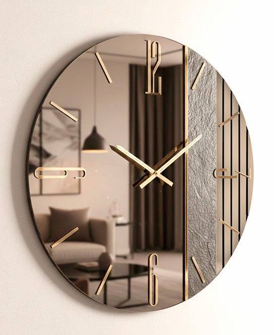 DESCRIZIONE L’orologio TIC TAK (Ø 80 cm) ridefinisce la decorazio ne murale attraverso un sofisticato gioco di contrasti. Il design si divide tra l’eleganza magnetica dello specchio e il rigore di una finitura materica opaca, impreziosito da ricercate lancette in metallo cromato. Un pezzo iconico, minimalista e di grande presenza scenica, ideale per i living più esclusivi. DESCRIPTION The TIC TAK wall clock (Ø 80 cm) redefines wall decor through a sophisticated interplay of contrasts. Its design balances the magnetic elegance of the mirror with the sleek precision of a matte textured finish, enhanced by refined chrome-plated metal hands. An iconic, minimalist statement piece designed to elevate the most exclusive interiors