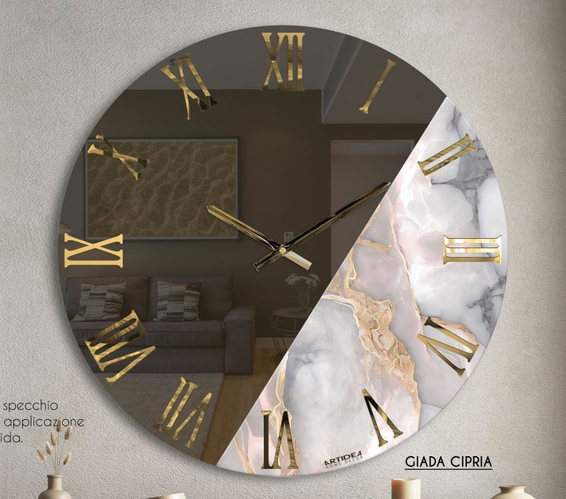 Orologio da parete in vetro e legno con ritocchi a mano e resina dimensioni diametro 60