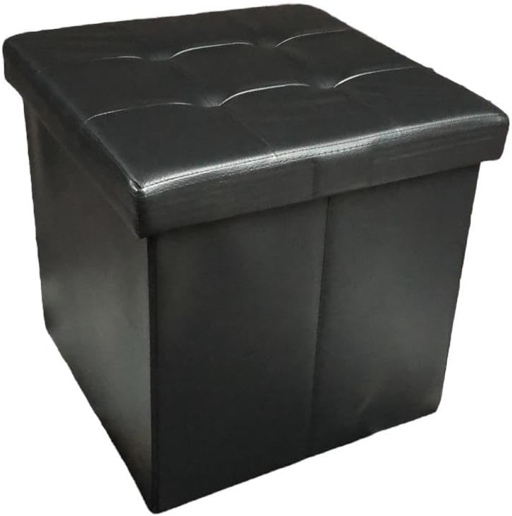 Contenitore Poggiapiedi Sgabello Basso Portaoggetti Pouf Ecopelle Salotto Camera da Letto Tavolino da Salotto (38 x 38 x alt. 38, nero)