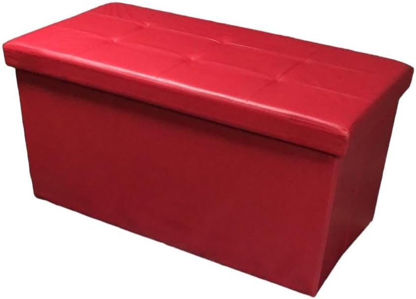 Pouf Contenitore Poggiapiedi Sgabello Basso Portaoggetti Pouf Ecopelle Salotto Camera da Letto Tavolino da Salotto (38 x 76 x alt. 38, rosso)