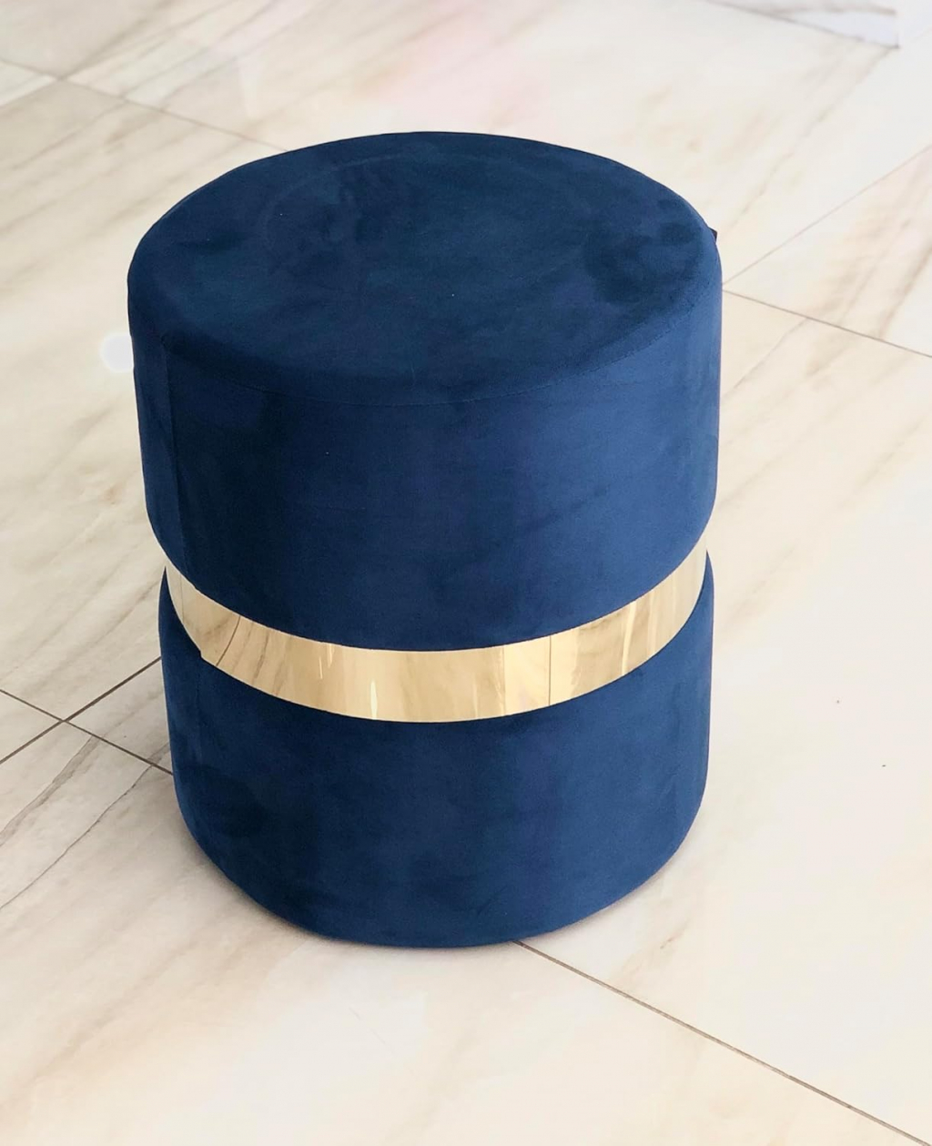 Pouf in velluto I Sgabello da Salotto Comfort Design Moderno Misura Max Diametro 37cm altezza 42 cm (blu)