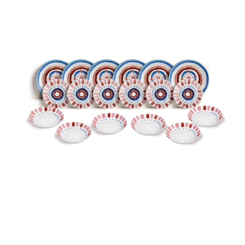 Servizio di piatti in porcellana, la forma dona una certa eleganza al servizio. Set di stoviglie che si applica perfettamente su qualsiasi tavolo o cucina. Design semplice, non passa mai fuori tempo, dona un tocco di colore e allegria alla tavola. Il servizio include 6 piatti piani (Ø 26 cm) , 6 piatti fondi (Ø 20.5 cm), 6 piatti da frutta (Ø 20 cm) . Adatto per l'uso quotidiano, nei ristoranti, riunioni di famiglia, feste, o come un bel regalo per l’anniversario, le nozze, ecc. Idoneo all’uso in microonde e lavabile in lavastoviglie.