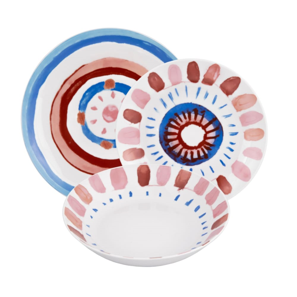 Servizio piatti in gres porcellana per 6 persone 18 pezzi modello Elisa