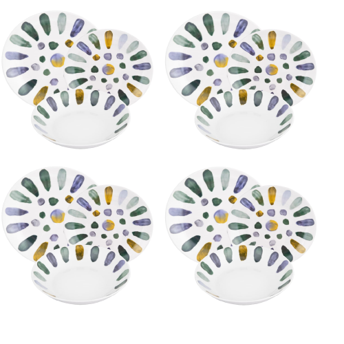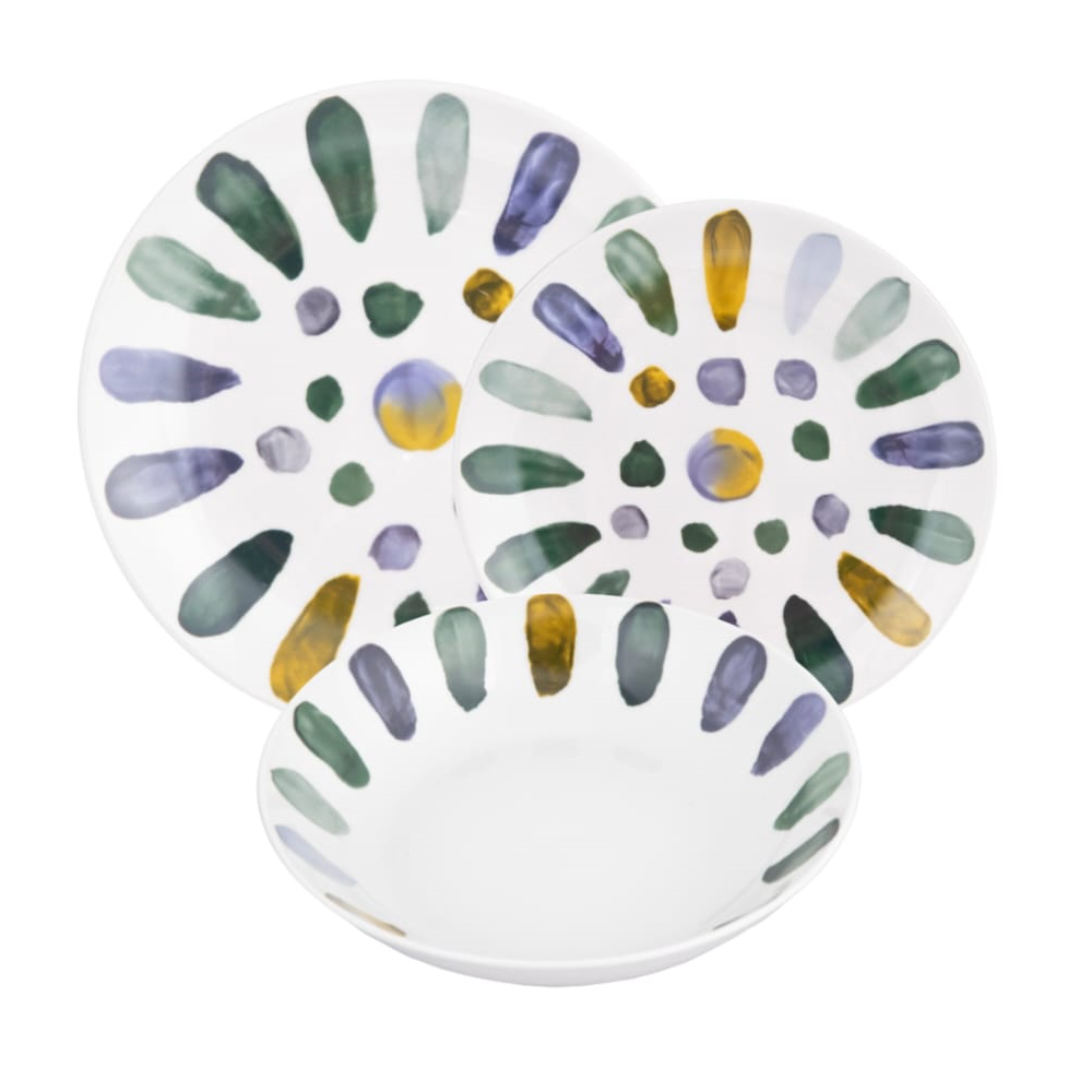 Servizio piatti in gres porcellana per 6 persone 18 pezzi modello Kalei
