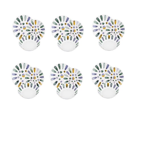 Servizio di piatti in porcellana, la forma dona una certa eleganza al servizio. Set di stoviglie che si applica perfettamente su qualsiasi tavolo o cucina. Design semplice, non passa mai fuori tempo, dona un tocco di colore e allegria alla tavola. Il servizio include 6 piatti piani (Ø 26 cm) , 6 piatti fondi (Ø 20.5 cm), 6 piatti da frutta (Ø 20 cm) . Adatto per l'uso quotidiano, nei ristoranti, riunioni di famiglia, feste, o come un bel regalo per l’anniversario, le nozze, ecc. Idoneo all’uso in microonde e lavabile in lavastoviglie.