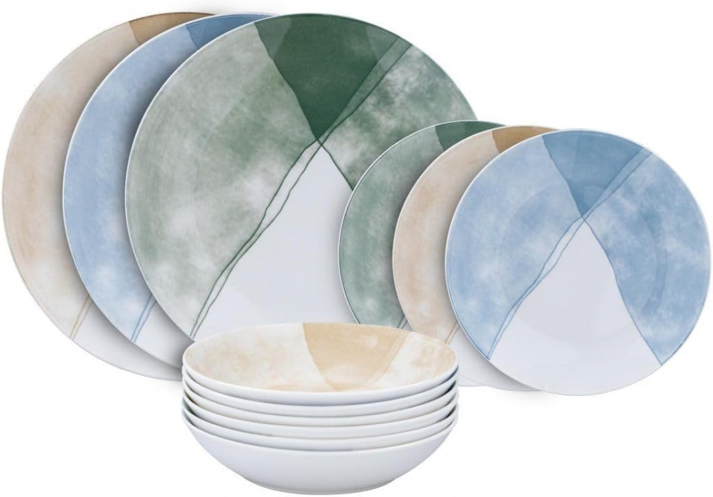 Servizio di piatti in porcellana, la forma dona una certa eleganza al servizio. Set di stoviglie che si applica perfettamente su qualsiasi tavolo o cucina. Design semplice, non passa mai fuori tempo, dona un tocco di colore e allegria alla tavola. Il servizio include 6 piatti piani (Ø 26 cm) , 6 piatti fondi (Ø 20.5 cm), 6 piatti da frutta (Ø 20 cm) . Adatto per l'uso quotidiano, nei ristoranti, riunioni di famiglia, feste, o come un bel regalo per l’anniversario, le nozze, ecc. Idoneo all’uso in microonde e lavabile in lavastoviglie.