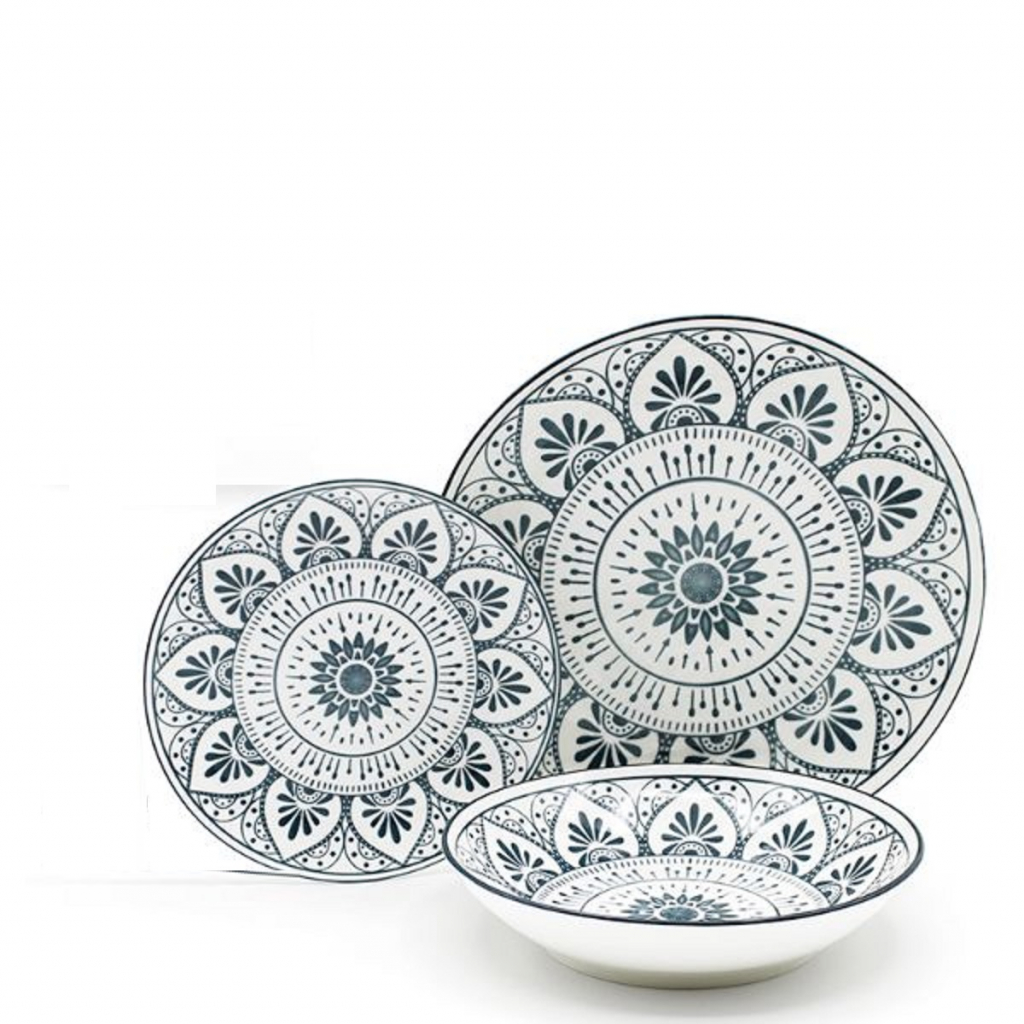 Servizio di piatti in gress porcellana, la forma dona una certa eleganza al servizio. Set di stoviglie che si applica perfettamente su qualsiasi tavolo o cucina. Design semplice, non passa mai fuori tempo, dona un tocco di colore e allegria alla tavola. Il servizio include 6 piatti piani (Ø 26 cm) , 6 piatti fondi (Ø 20.5 cm), 6 piatti da frutta (Ø 20 cm) . Adatto per l'uso quotidiano, nei ristoranti, riunioni di famiglia, feste, o come un bel regalo per l’anniversario, le nozze, ecc. Idoneo all’uso in microonde e lavabile in lavastoviglie.