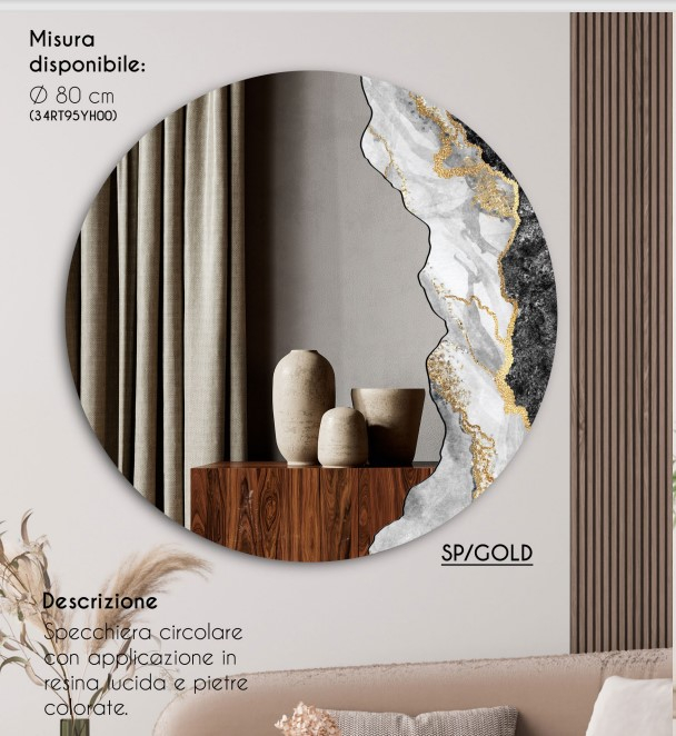 Specchio Tondo diametro 80 con applicazioni di resina lucida e pietre con finiture decorate a mano
